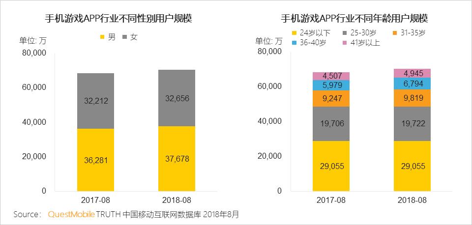 根据QuestMobile数据,30岁以上手机游戏APP用户规模同比增长超1800万,增长贡献度为98%;