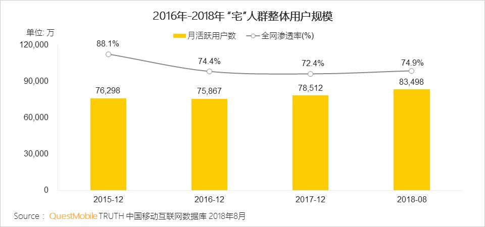 2、“宅”人群整体用户规模突破8亿,呈稳定增长趋势