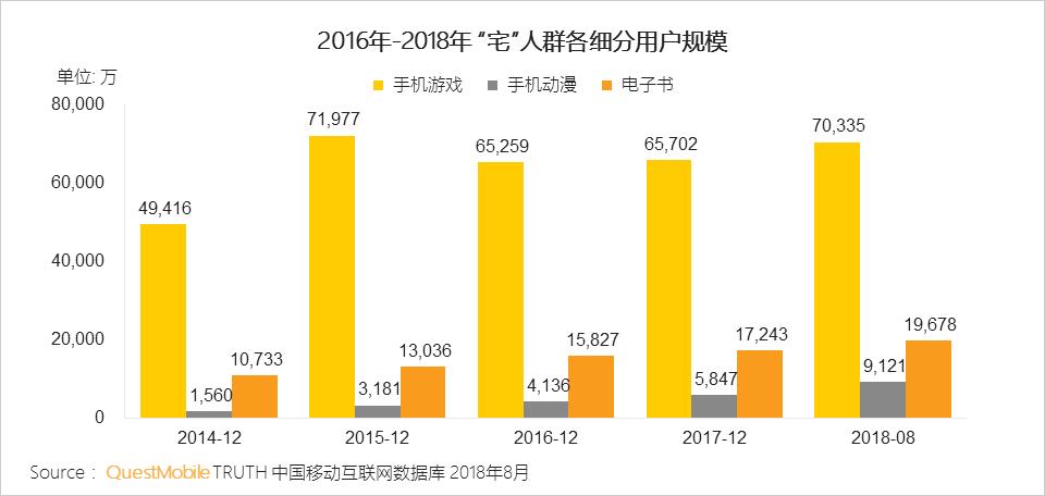“宅”人群指的是深度爱好游戏、动漫、小说等内容,追求这类内容带来的精神享受超过对户外爱好的人群。宅文化的表现包括玩手机游戏、追更动漫/漫画、逛弹幕视频网站、刷弹幕等。