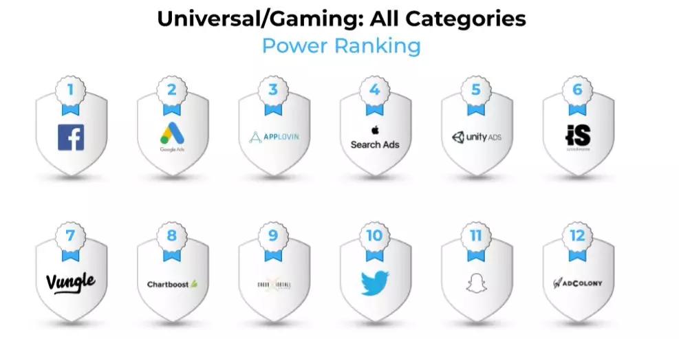 首先,Top5以内的广告平台巨头们排名比较稳定。Facebook、Google Ads和AppLovin维持了上期的表现,分列榜单前三。而Apple Search Ads和unity ADS则互换了位置,分列榜单四五。