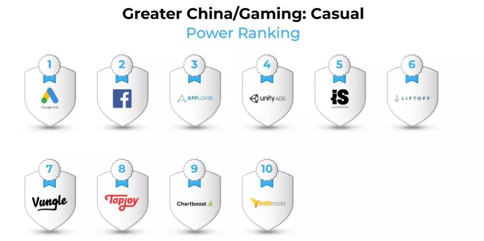 二、大中华区游戏类综合表现排名:ironSource表现亮眼,Yeahmobi & 头条上榜
