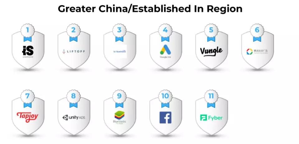 综合三组细分排名来看,Facebook和Google Ads在大中华区的表现依然强势。而来自以色列的广告平台ironSource,在大中华区的表现比较亮眼。据悉,它的主要产品是应用内视频广告网络,在全球有8万多个合作开发商。