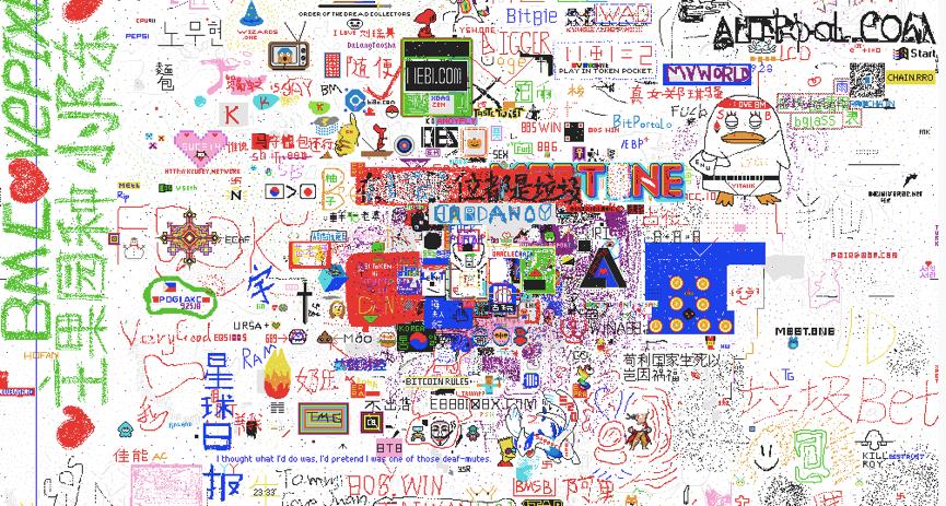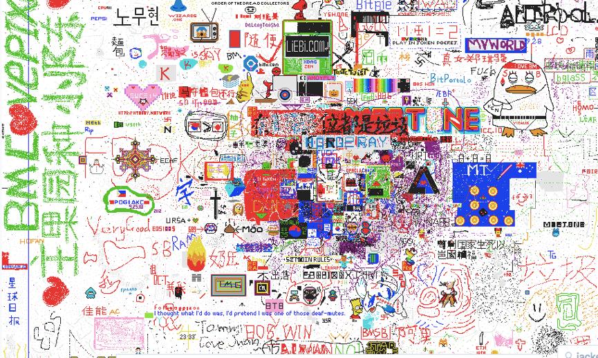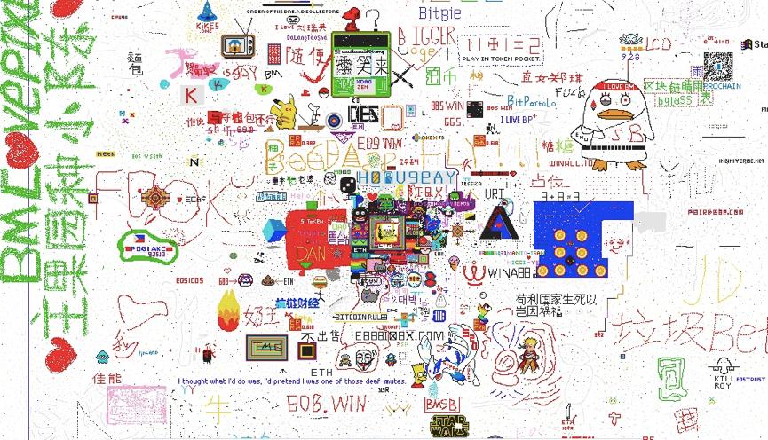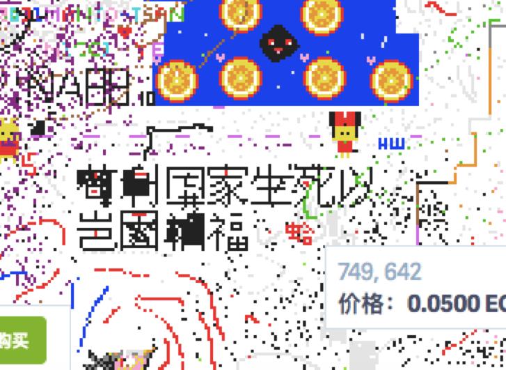 这个号称艺术协作的游戏,实际上就是个抢地游戏,当然也有人把它比作广告牌。首先,游戏制作方制作了一块空白的 1000x1000 像素画布,如果你想要在上面作画,你需要按每个像素 0.05 个 EOS 的价格来买。然后后来者如果想要在你圈的地盘上作画,他需要支付 1.35 倍的价值来买。总之,如果你最早买了最多的最显眼(中间)位置的像素,那你就可以大赚一笔。