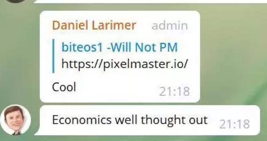 2. “游戏收益”的 40% 作为“贡献奖励”,在游戏结束后分发给参与游戏的人,参与者购买的每一个像素点都会增加其贡献奖励因子(所以,实际上,参与就能赚钱);25% 分到奖池,奖励给整个游戏中最后一个购买像素点的人(24 小时倒计时);8% 作为推荐人奖励,如果没有推荐人,这部分也归入奖池。