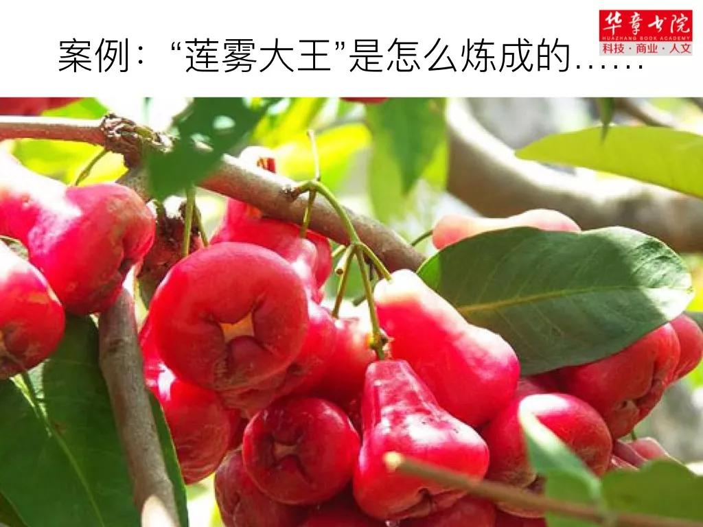 “口碑效应”一传十,十传百,就让更多的消费者知道了他的莲雾,愿意去购买,然后引发了他收入的增长,工业能力的提高,然后就可以满足更多的顾客。经过这样几年的发展,实际上果农就成为了台湾的“莲雾大王”。