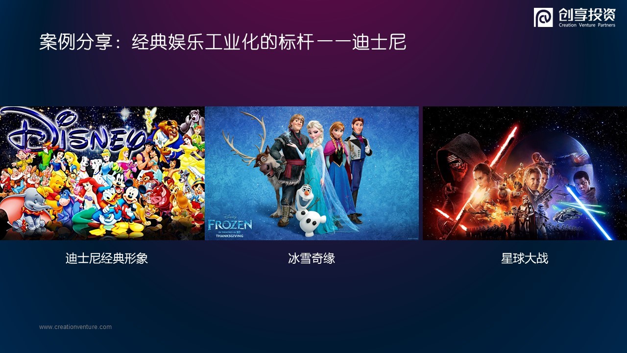 提及到文创,我想先讲讲迪士尼。上周刚去上海参加了迪士尼的活动。迪士尼是经典娱乐工业化最头部的一家公司,上图是迪士尼旗下不同工作室的作品,都是大家耳熟能详的。