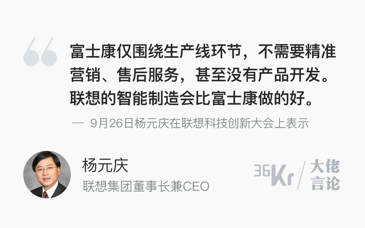 大佬言论 | 杨元庆:联想会比富士康做得好