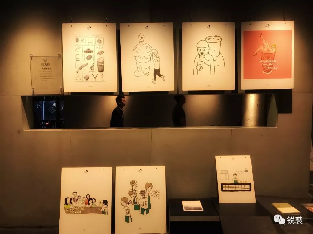 区域的另一头为喜茶的插画实验室,这里是喜茶历年来与不同插画师、艺术家合作的作品集合地;