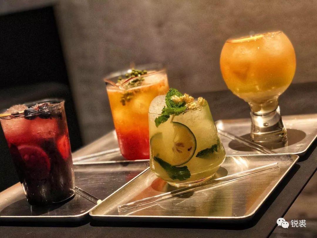 这块区域同样设在二楼,最先面世的,是四款颜值极高的特调饮品,分别以“春夏秋冬”为主题,采用高级定制茶叶冲调,并混入各类酒饮,更融入了一些成都本地的特有元素。