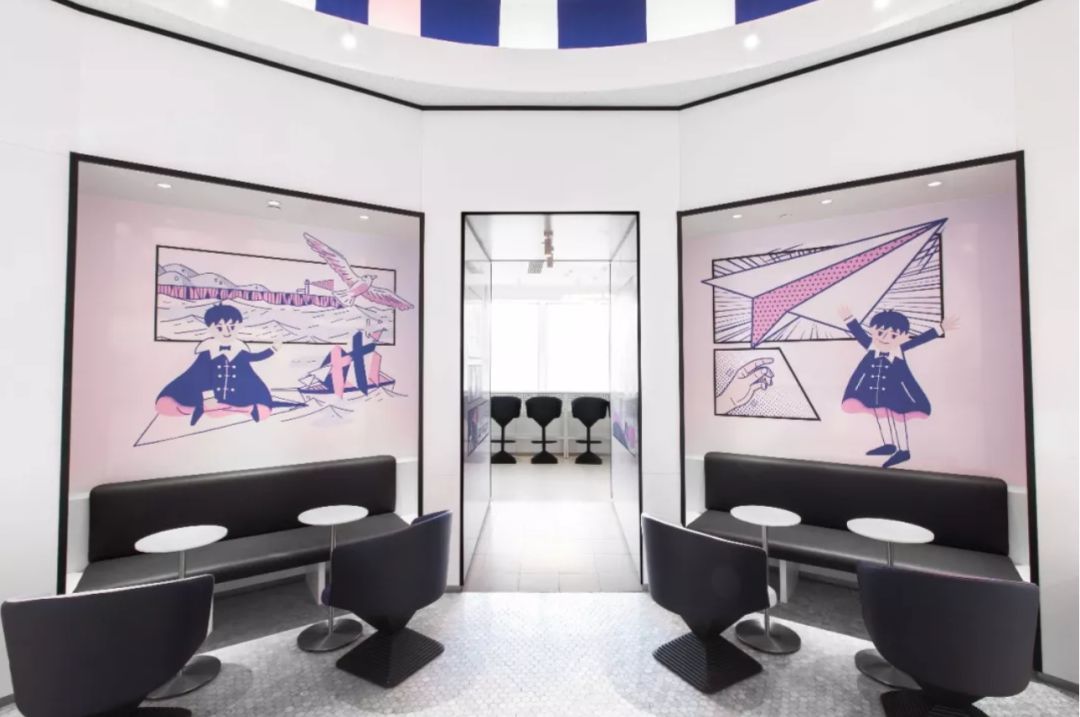黑金店只是喜茶打造主题空间的案例之一,有少女心满满的PINK店;还有与独立设计师合作的DP店(Daydream Project)。这些空间都鲜明独特,有着清晰的目标受众与场景营造。