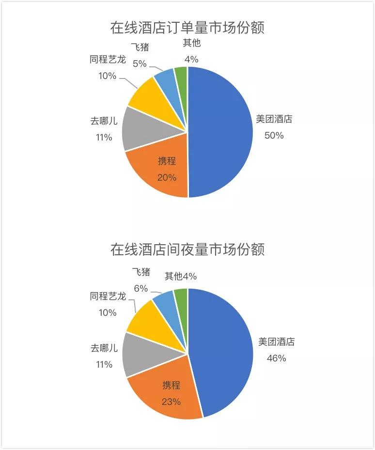 在机票领域无法与携程抗衡,美团则另辟蹊径,依靠美团和大众点评庞大的流量和服务生态,重点发力酒店预订业务,已然成为占据半壁江山的行业龙头。2018年二季度,美团酒店订单量和间夜量的市场份额均接近50%。