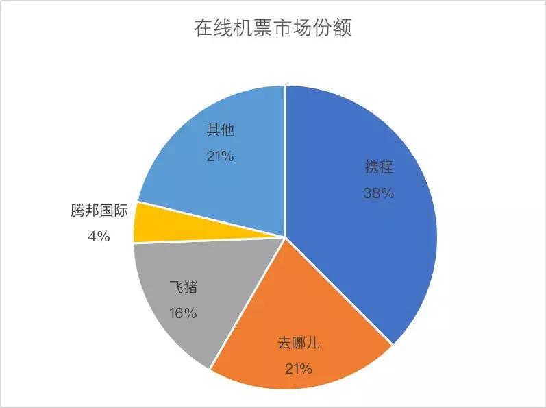 交通票务既是在线旅游行业中的绝对主力,也是渗透率最高的细分行业。携程在票务领域的霸主地位不言而喻,携程和去哪儿在线机票的市场占有率将近60%,其他平台也仅有阿里的飞猪能分得一杯羹。