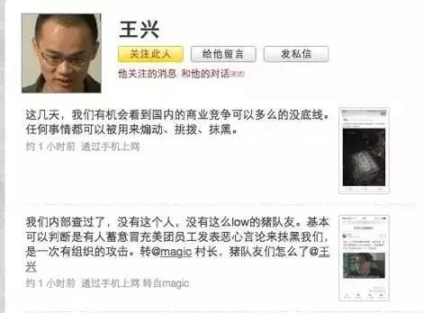 美团的CEO王兴当晚发了这么一条微博,回应此事件: