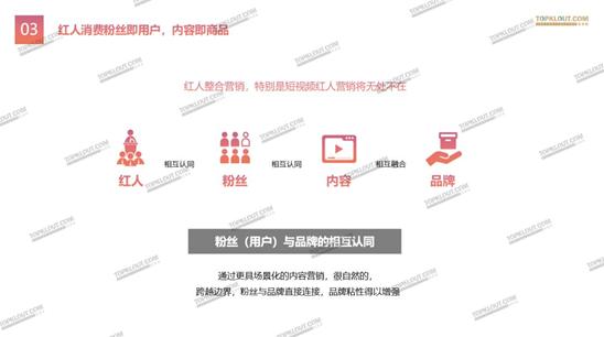 在红人营销的实际过程中,粉丝通过红人的推荐购买产品,表示粉丝对于红人本身及所输出的内容、所推荐产品的认同。
