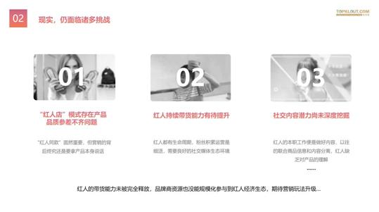 总体来说,红人的带货能力还尚未被完全释放,红人经济在专业化和系统化的内容营销策方面还略显欠缺;而品牌商资源也还未能规模化地参与到红人经济生态中来,市场仍需要有更多更加新奇、更加好玩营销玩法的出现。