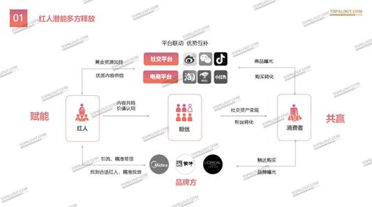 同时,“内容+流量”也已经成为连接红人和社交媒体平台的重要环节。平台为红人提供流量端口,红人为平台提供内容填充。两者互补互利,形成稳定的依存模式。