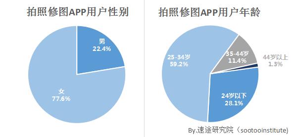 速途研究院的去年的调研数据显示,国内使用拍照修图APP的用户中,有77.6%是女性。打开美图秀秀的社区也会发现,社区内容多涉及美妆、拍照技巧、美食等,好看的小姐姐远多于好看的小哥哥。