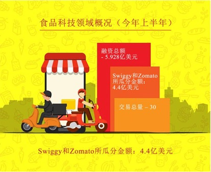 食品科技公司从宠儿沦落为弃儿,之后又在两者间徘徊。如果从投资数据来看,目前食品科技再次受到了青睐。今年印度已经有5.92亿美元投资于食品科技领域,Swiggy 和 Zomato 这两家公司瓜分了其中4.4亿美元。它们的基本业务不是提供食品,而是为饥饿并愿意为服务付费的顾客提供食品配送服务。