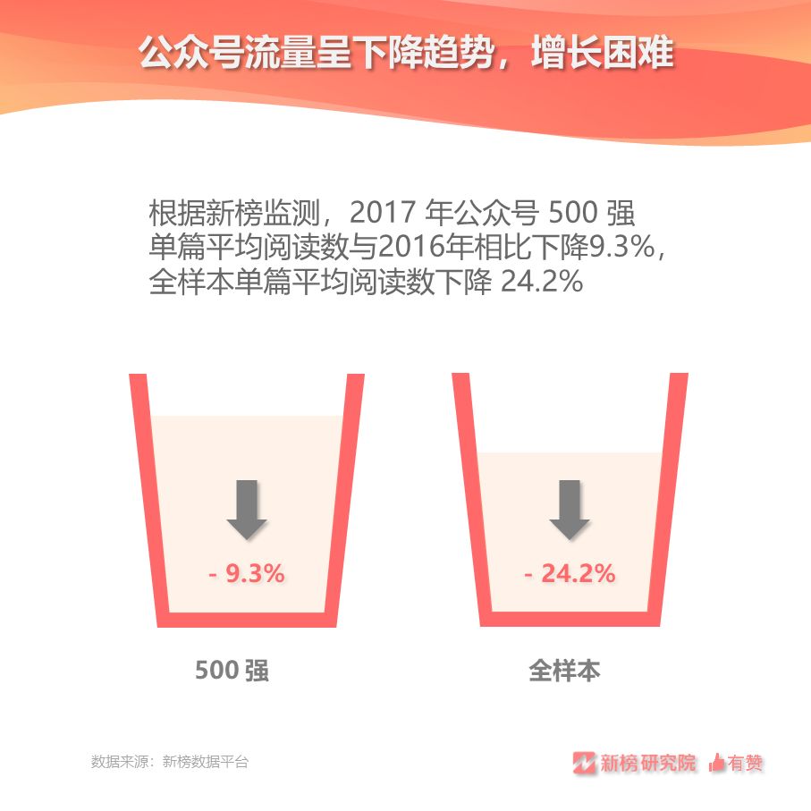 根据新榜大数据统计,500强和全样本中单篇文章的平均阅读数,出现了明显的下滑。