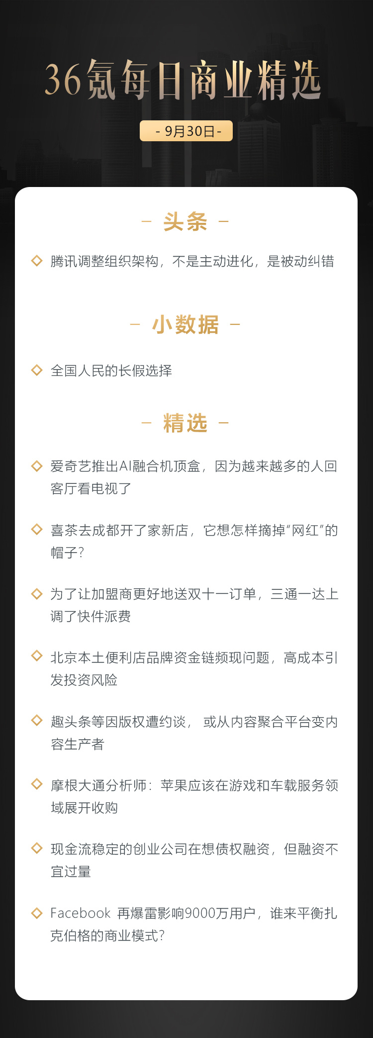 本文来自36氪付费栏目《36氪每日商业精选》——9月30日