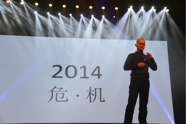 那年年底,王兴把美团成立四周年的年会设在了北大百年纪念讲堂,主题设为“危·机”。他预警了巨头入场、滴滴快的等新风口,也定下目标:要从团购老大做到O2O老大。