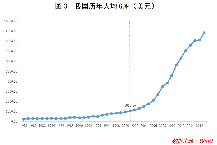 与此同时,在“让一部分人先富起来”的政策推动下,我国的中产阶 级规模开始与日俱增,在他们的引领下,国人对于闲暇的呼唤也日渐强烈。有研究显示,当一个国家人均GDP达到1000美元时,该国家将步入所谓的“有闲社会”。对于我国来说,人均GDP于2001年跨越了1000美元的关卡,到2017年已直逼9000美元,中产人群的规模更是超过两亿。