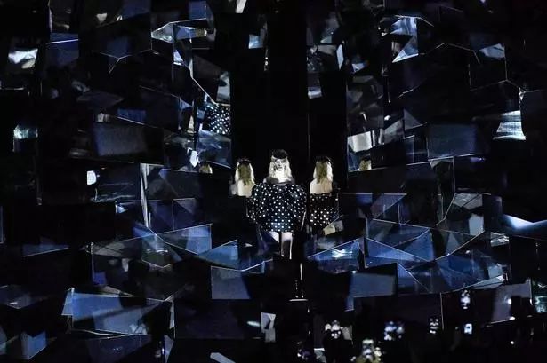 Gucci将2019春夏系列发布地点选在Le Palace剧院,模特又后排鱼贯而出,在舞台上集中亮相