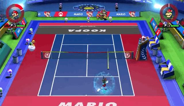 在马里奥网球中,你可以拿起球拍跟长辈运动对战;