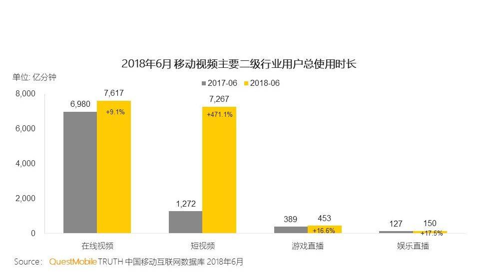 这项指控并非凭空而生,有数据为证。QuestMobile发布的《中国移动互联网2018半年大报告》显示,现今用户对互联网的依赖正变得愈发强烈,平均每人每天上网时长达到5个小时,较2017年同期增长23.2%。但这些新增的注意力,并没有做到雨露均沾,而是几乎全部用于宠幸短视频。