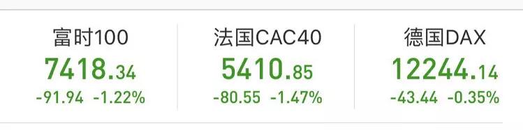 同时,欧洲股市10月4日也普遍低收,富时100指数收跌1.22%;法国CAC 40指数收跌1.47%;德国DAX 30指数收跌0.35%。