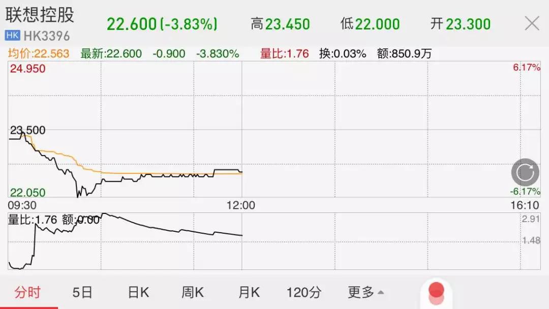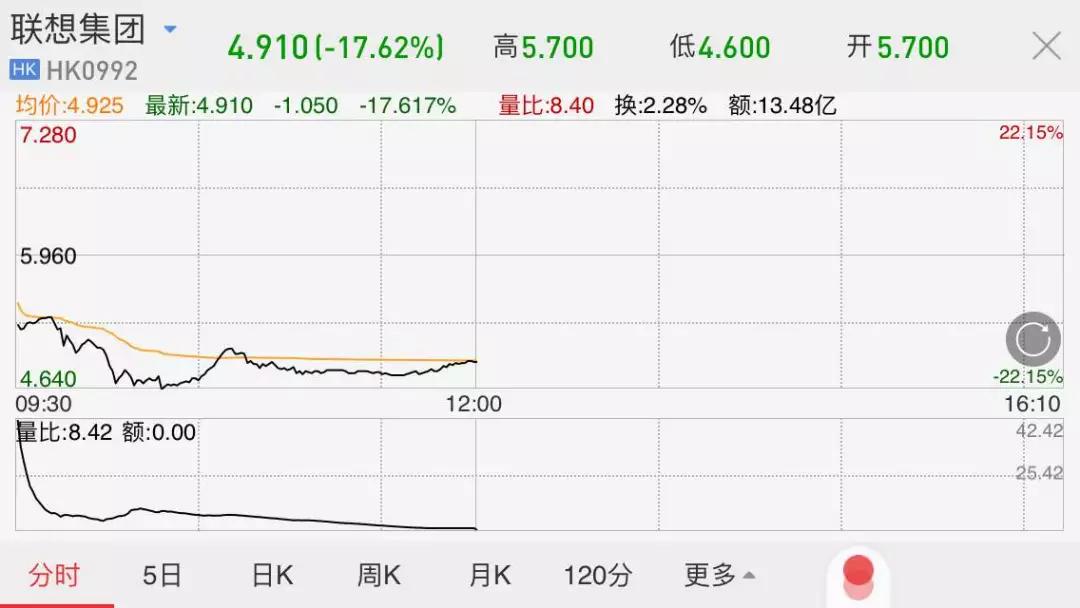 编者按:本文来自微信公众号“每日经济新闻”(ID:nbdnews),作者何小桃。36氪经授权转载。原标题是“突发,联想集团早盘大跌17%!两个半小时126亿港元没了”。