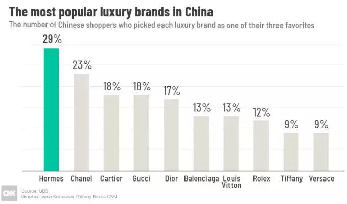 中国最受欢迎的外国奢侈品品牌(图片来源:CNN)