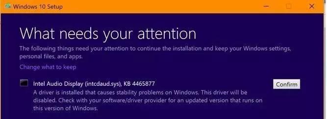受影响的英特尔驱动程序的客户将看到此支持文档中针对KB4465877列出的“需要注意的事项”警告消息。