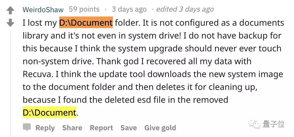 而且更令人跳脚的是,该用户在研究尝试了各种恢复文件方法后,并没有成功——除非是提前备份过。