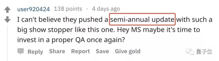 4月、10月是半年度更新,是重大更新,漏洞这样严重也能轻易推送出来,有用户表示难以想象:
