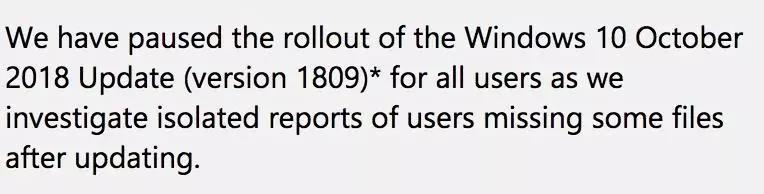 6日,微软在Win 10更新页面宣布,10月更新版本推送已经暂停。