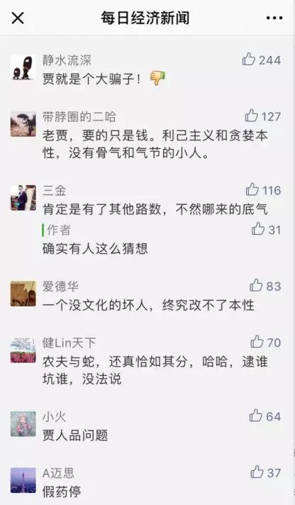 在8日上午每日经济新闻(微信号:nbdnews)推送的《败光55亿,贾跃亭欲撕毁协议!坑了孙宏斌,又要“辜负”许家印?》一文中,不少读者就对贾跃亭的人品表示怀疑: