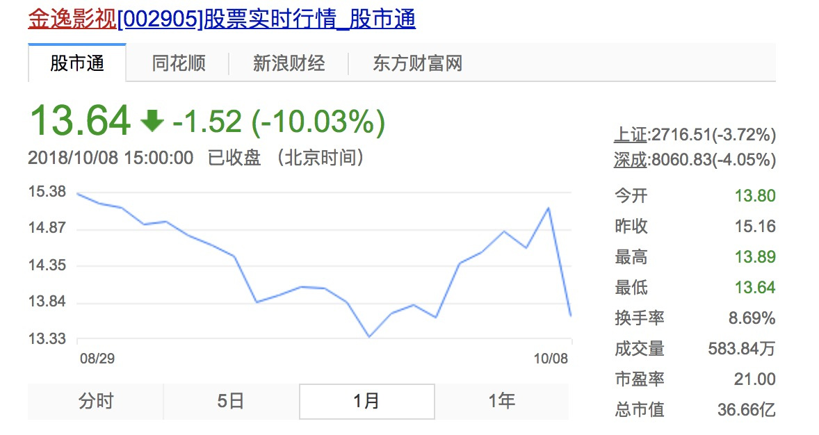 前有国庆档票房不振,后有监管利刃落下,纵然是没有大盘不振的因素,也很难让人有太大的信心。再加上大盘添点堵,集体惨绿也就在情理之中了。