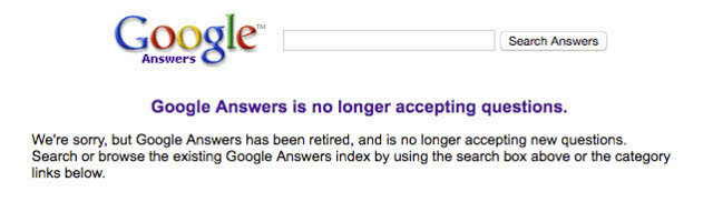 Google Answers是谷歌开发的第一个项目,最初创意由拉里·佩奇(Larry Page)提出。Google Answers持续了四年多,但在2006年停止接受问题。