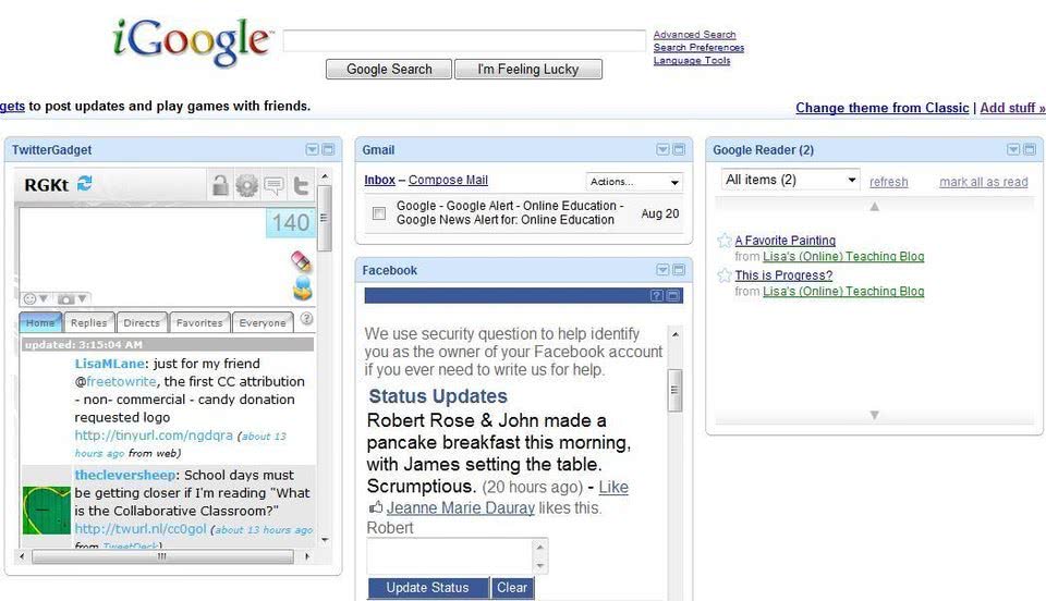 个性化主页iGoogle于2013年被关闭。iGoogle创建于2005年,允许用户使用小部件定制他们的主页。谷歌表示,由于应用程序已经可以在Chrome和Android上运行,iGoogle变得不再那么重要了。