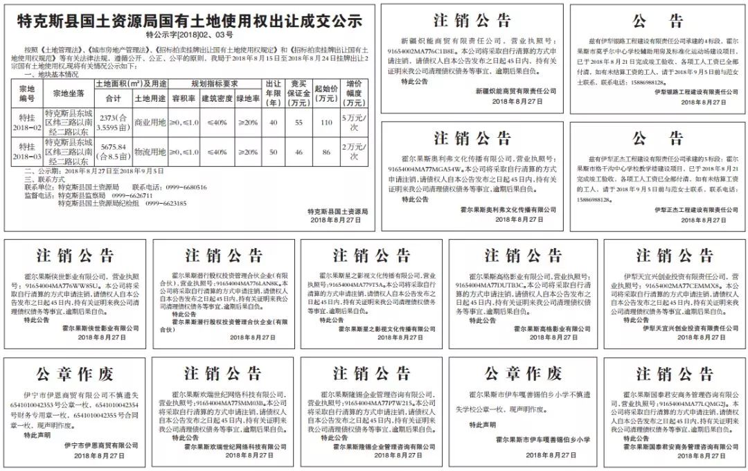 “因为申请注销的公司实在太多,《伊犁日报》的版面都快不够用了,仅8月28日一天就刊登了25则‘注销公告’。”
