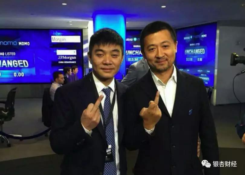 映客上市当天,在香港交易所那几个醒目的大字下,奉佑生和朱啸虎皆身穿一身全黑中山装,面带微笑,更是双双自信地竖起了大拇指,一起愉快的合了影。