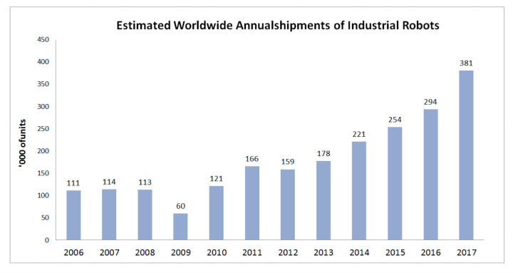 首先是一个延续性趋势:人工成本进一步提升,用机器替代人工的回报率更加凸显。这一点在中国市场体现得尤为明显,根据德勤2016年的测算,中国的劳动力成本10年上升了5倍;目前,中国已成为全球机器人增速最快的市场。