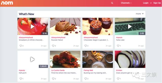 Nom:一个面向厨师和美食爱好者的在线视频直播社区,用户可以一边制作、分享、观看和参与到视频直播中,一边与其他人进行聊天和互动。创始人为前YouTube的工程组长Vijay Karunamurth和YouTube的联合创始人及技术总监Steve Chen。