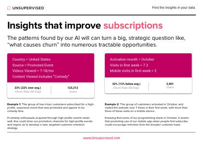 这是世界上第一个基于无监督机器学习的人工智能引擎。Unsupervised可以帮助减少客户流失、提高平均订单价值、降低呼叫中心成本、增加收入、减少客户投诉和支持成本、优化媒体支出、提高员工满意度和等等。