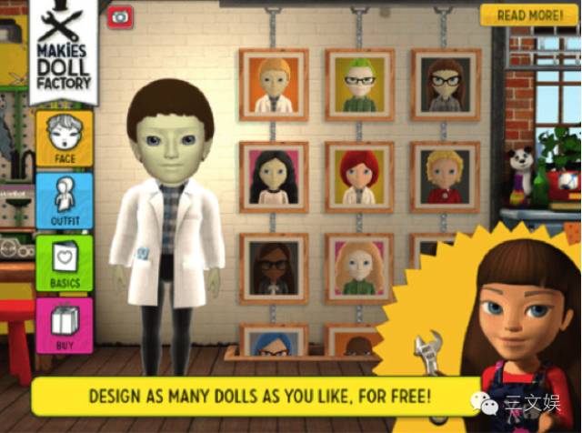 MakieLab:推出了一款名为Makies Doll Factory的iOS应用,让孩子们可以自行设计发型、面孔以及服装,从而打造自己独一无二的玩具。并且还可以运用3D打印技术将设计好的玩具生产出来(玩具打印88美元起)。