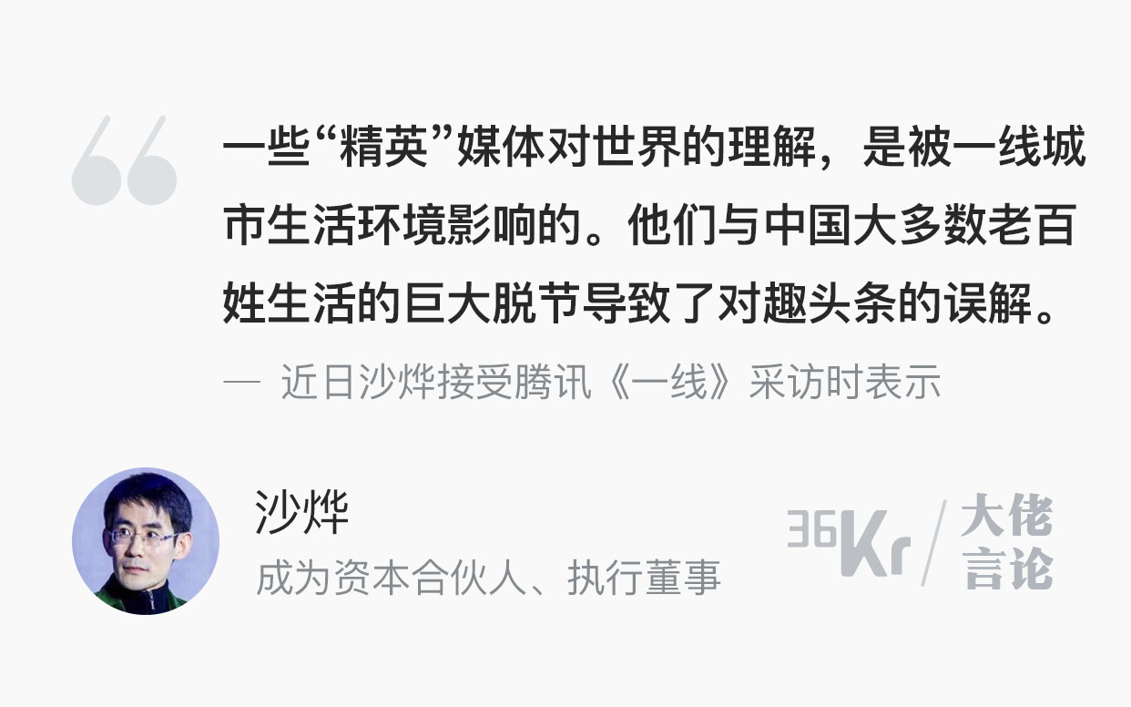 大佬言论 | 沙烨:“精英”与世界的脱节导致了对趣头条的误解