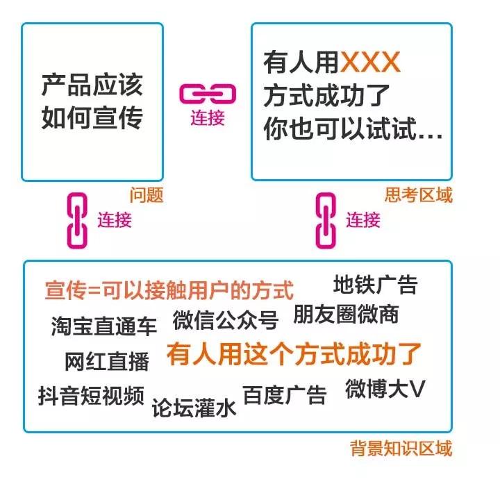 我们首先会根据问题,在自己的知识库中搜索相关的背景知识,可以是概念,方法论,或者别人的经验,或者自己的所见所闻的信息,也可以是其他行业的知识...