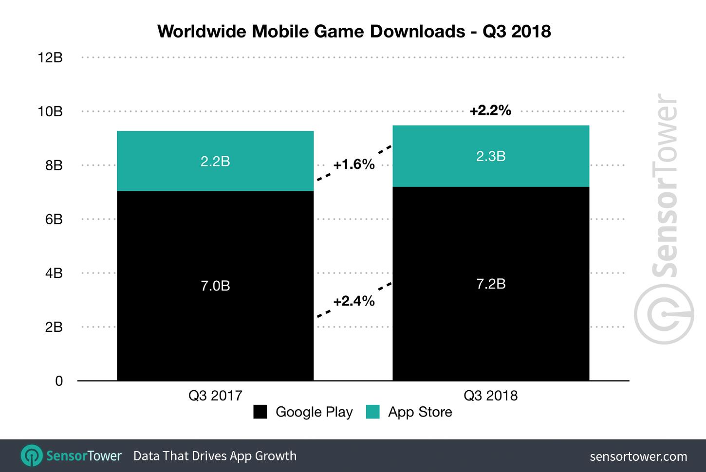 2018年第三季度全球手机游戏应用下载量(来源:SensorTower)