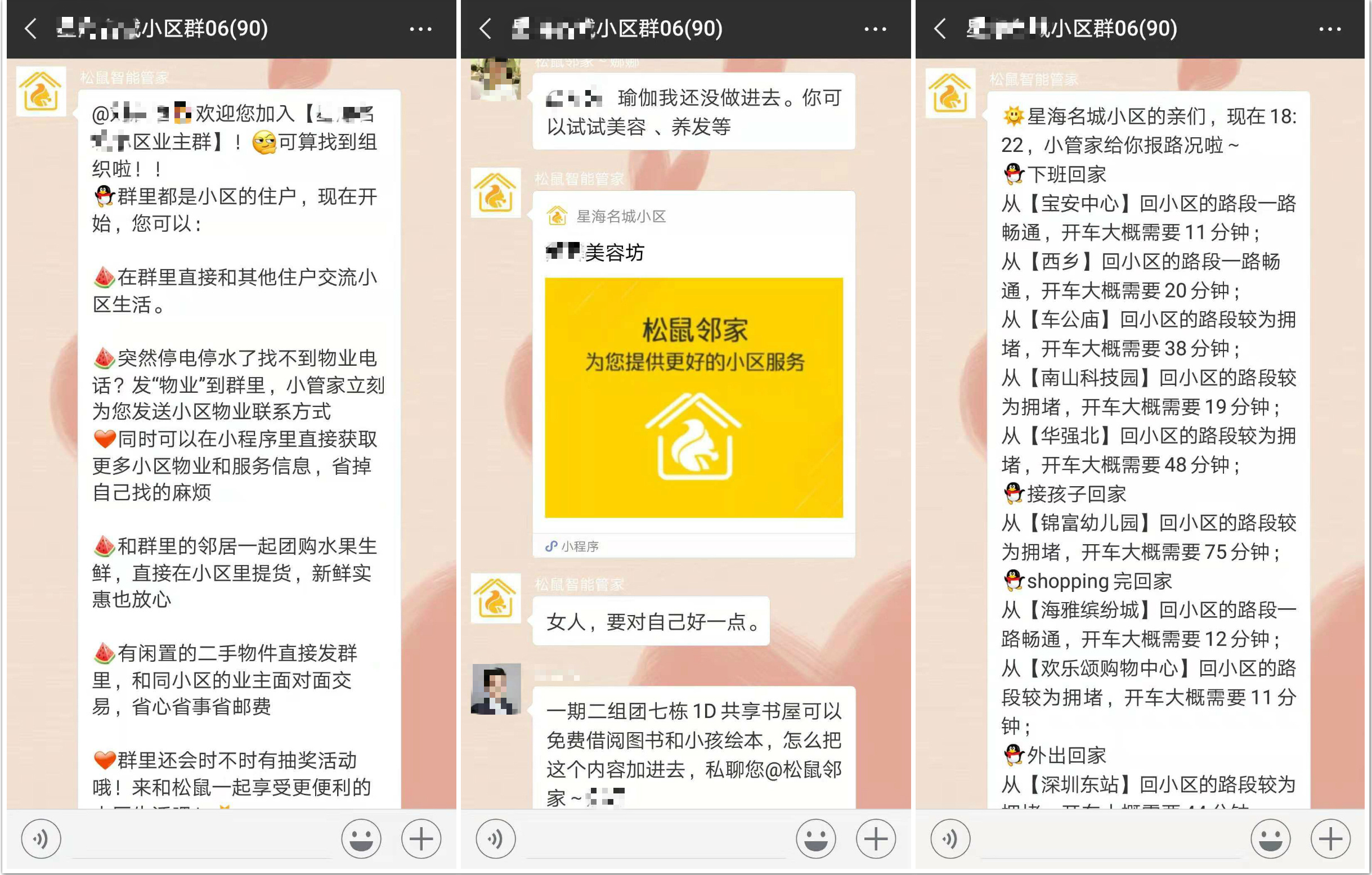 松鼠邻家创始人高振刚告诉36氪,他们的第一步开始于深圳,今年 3 月正式上线小程序,与微信群做联动。